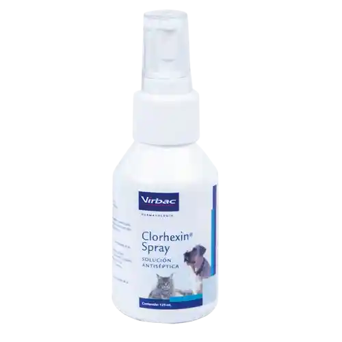 CLORHEXIN SPRAY FCO X 120 ML de VIRBAC es una solución dermatológica de alta eficacia, especialmente formulada para el tratamiento de infecciones cutáneas en mascotas.