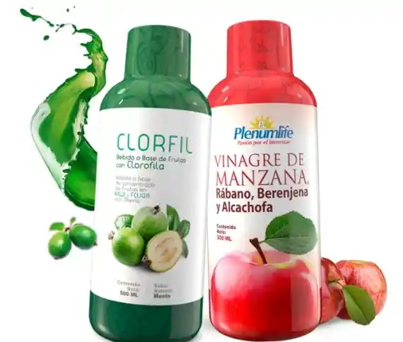 Mejora La Digestión y El Colesterol En La Sangre Clorfil Mantén saludable tu sistema digestivo, tu corazón, protege tu colon, hígado, estomago y vesícula consumiendo clorofila. Beneficios de clorofila Ayuda con la oxigenación de la sangre y aumenta su producción. Desintoxica el cuerpo y favorece la eliminación de metales pesados del organismo y otros desechos. equilibra los niveles de glucosa en sangre. Disminuye un accidente cardiovascular. Es rica en carotenoides que activan las enzimas imprescindibles para una adecuada asimilación de nutrientes. Es un excelente enjuague bucal. Evita flatulencias, mal aliento y pesadez estomacal. Gracias a su alto contenido de vitamina A, C y E, la clorofila es ricas antioxidantes. Modo de uso: Agítese antes de usar. consuma una porción (30 ml) disuelta o en medio vaso (120 ml) de agua. Registro Sanitario Invima: RS INVIMA: RSAD12I84613 Vinagre De Manzana Ingredientes de origen natural para mejorar el metabolismo y mantener un estilo de vida saludable. Coadyuvante en la alimentación, mejora de forma natural la digestión, es depurativo a nivel hepático e intestinal y ayuda a evitar la retención de líquidos. Beneficios: Tiene propiedades depurativas, efecto diurético que promueven la pérdida de peso. Favorece la digestión de las grasas y la eliminación de toxinas de nuestro cuerpo. Reduce el colesterol y triglicéridos. Modo de uso: Agítese antes de usar. consuma una porción (30 ml) disuelta o en medio vaso (120 ml) de agua. El vinagre alcanza para 17 porciones, tomando media copa diaria equivalente a 30 ml, si deseas puedes consumir en ayunas. Registro Sanitario Invima: RS INVIMA: RSAD12I84613