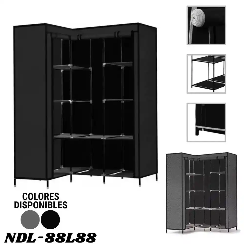 Closet Armario Ropero De Tela Plegable NDL-88L88 Optimiza el espacio de tu dormitorio con este innovador armario ropero en forma de L. A diferencia de los closets convencionales, el modelo NDL-88L88 está diseñado específicamente para encajar en las esquinas, transformando un espacio muerto en una zona de almacenamiento amplia y organizada. Es la solución perfecta para habitaciones con espacio limitado o para quienes buscan un organizador auxiliar de gran capacidad. Colores disponibles: Negro y gris NOTA: Selecciona color de preferencia, en caso de no ser seleccionado, se enviará color sujeto a disponibilidad Características: - Diseño inteligente en "L": Su estructura angular permite ubicarlo en esquinas, ofreciendo una profundidad y distribución que maximiza el área de guardado sin obstruir el paso en la habitación. - Zona de colgado: Cuenta con una barra superior resistente para colgar camisas, chaquetas, vestidos y abrigos, manteniéndolos sin arrugas. - Múltiples estantes: Equipado con varias repisas distribuidas en ambos lados de la estructura, ideales para organizar ropa doblada, toallas, cajas organizadoras, zapatos o accesorios. - Cubierta antipolvo enrollable: Incluye una funda de tela que protege tus prendas del polvo, la humedad y los insectos. El sistema de puertas frontales se puede enrollar y fijar en la parte superior para dejar el armario abierto y accesible, o cerrarse completamente para una apariencia ordenada. - Estructura estable: Construido con tubos metálicos y conectores de plástico reforzado que aseguran la estabilidad del mueble una vez armado. Especificaciones: Referencia: NDL-88L88. Tipo: Armario Esquinero Plegable. Material de la estructura: Tubo de metal y uniones de PP. Material de la funda: Tela no tejida. Nota: Las imágenes publicadas son de referencia; el producto real puede presentar ligeras variaciones en su diseño y tonalidad de color.
