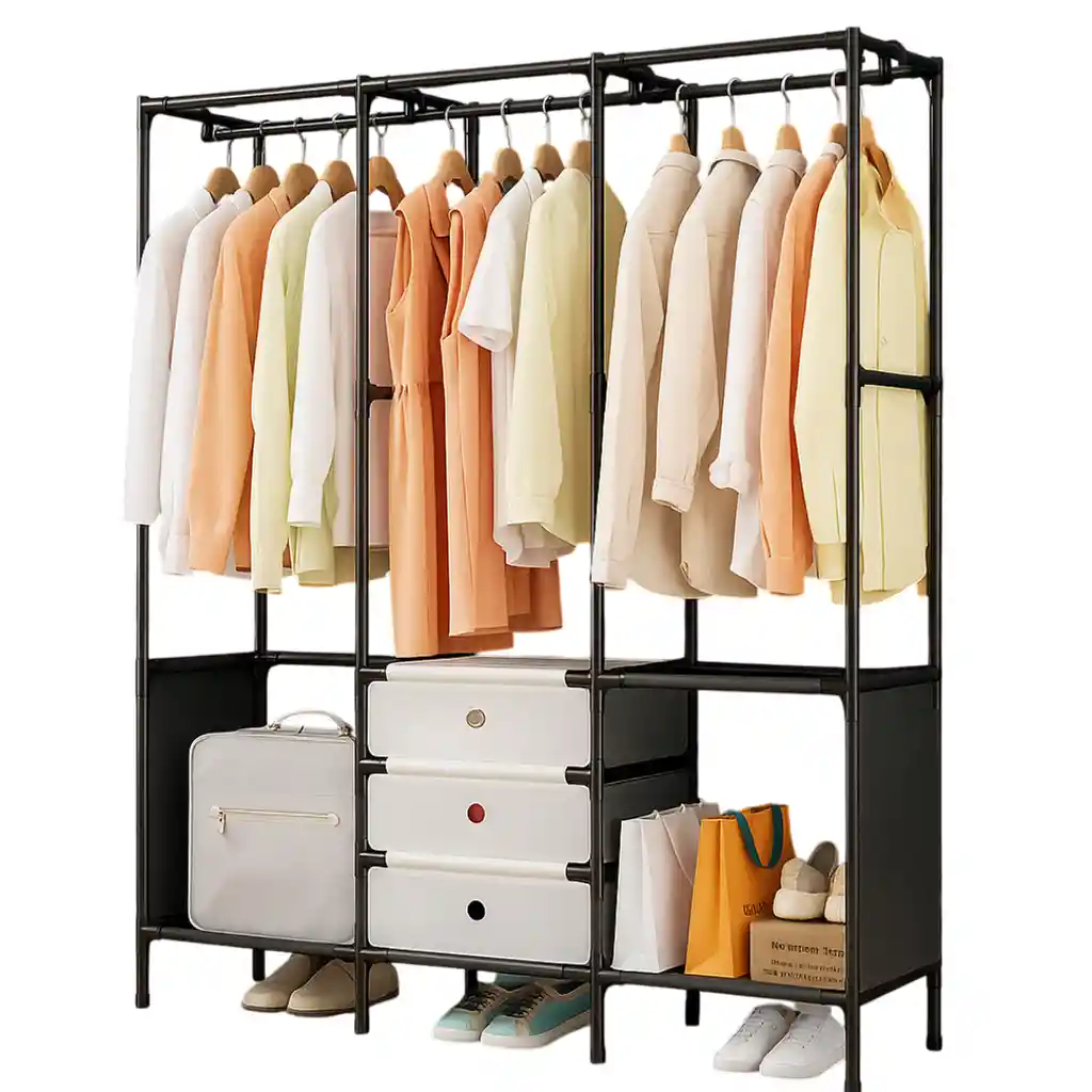 El Closet de Lujo 3 Cuerpos es la opción perfecta para quienes necesitan un espacio amplio y organizado para su ropa y accesorios. Su diseño moderno y funcional integra tres cuerpos que permiten una distribución eficiente: los laterales y la parte superior están pensados para colgar prendas largas como vestidos, abrigos, camisas y chaquetas, mientras que en la parte central inferior incorpora 3 cajones de tela ideales para guardar ropa doblada, ropa interior, accesorios, toallas o elementos de uso personal. Fabricado con tubos metálicos resistentes y conectores plásticos reforzados, este closet asegura estabilidad y durabilidad, mientras que la cubierta de tela no tejida protege la ropa del polvo y mantiene el interior ventilado. Su estilo elegante combina con cualquier decoración y es perfecto para dormitorios, apartamentos o habitaciones auxiliares. Especificaciones: Material: Estructura en tubos metálicos, conectores plásticos y tela no tejida. Diseño: 3 cuerpos con espacios superiores para colgar y 3 cajones centrales. Dimensiones aproximadas: 123 cm (ancho) x 41 cm (profundidad) x 188 cm (alto). Capacidad: Ropa colgada, accesorios, ropa doblada y calzado. Color: Negro con cajones en tela clara (puede variar según disponibilidad). Montaje: Fácil de ensamblar sin herramientas especiales. Incluye: Closet de 3 cuerpos. 3 cajones de tela. Barras colgadoras. Manual de instalación. Nota de garantía: Este producto cuenta con 30 días de garantía por defectos de fábrica.