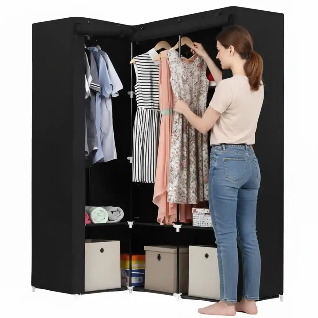 Organización funcional para espacios dinámicos Si tu espacio cambia, tu mobiliario también debería adaptarse. Este closet de tela esquinero combina ligereza y estructura firme para ofrecer una solución flexible. La barra integrada permite mantener vestidos, camisas y chaquetas en orden, mientras las repisas laterales ayudan a distribuir accesorios y ropa doblada. Su montaje sencillo facilita reubicarlo cuando lo necesites. Pensado para hogares prácticos y estilos de vida dinámicos. Especificaciones Closet de tela esquinero con estructura en tubos metálicos y conectores plásticos reforzados, cubierta de tela gris transpirable anti-polvo, dimensiones 150 cm ancho x 170 cm alto x 44 cm profundidad, barra metálica para colgar prendas, repisas organizadoras laterales y espacio inferior de almacenamiento, capacidad total de carga 10 kg, capacidad por repisa 5 lb, peso aproximado 5 kg, medidas del empaque 90 cm alto x 30 cm ancho x 10 cm largo. Incluye 1 Closet de tela esquinero con barra y repisas. Garantía 30 días por defectos de fabricación. Política de Retracto 5 días hábiles desde la recepción del producto, siempre que esté completo y sin uso. Nota Importante Si el producto llega golpeado o con piezas faltantes, repórtalo en las primeras 24 horas a la transportadora. Para aplicar la garantía, envía fotos y videos donde se evidencie el defecto.