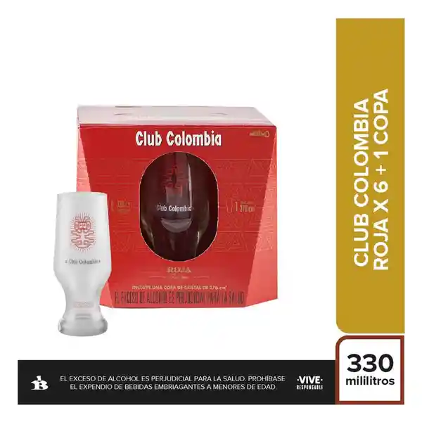 Kit Contiene 7 Unidades. Club Colombia Cerveza Roja Lata 6 Und de 330 mL c/u + Copa 1 Und.