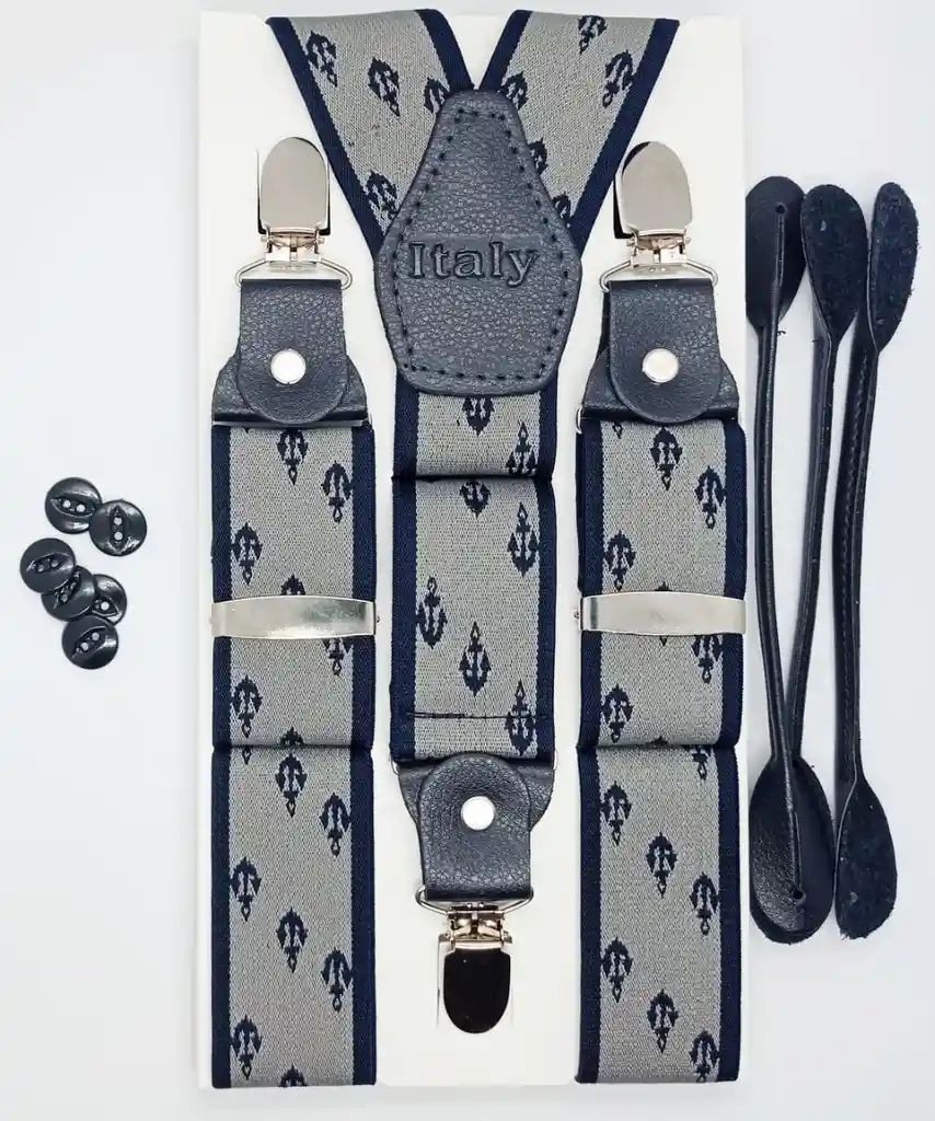 Elásticos italianos- Manufactura Colombiana- Uniones en cuero Napa- Ancho 3.8 cms.- Ajustables, talla única.- doble servicio, pinza y botónEscoge el tipo de tirante que se adapte más a tu estilo, tener en cuenta tu contextura y prendas con las que la usarás. Si las usas con traje adapta los botones que vienen incluidos en la caja, así como sus respectivas instrucciones. Las tirantas que encuentras a continuación son anchas y miden 4 centímetros de ancho.* Recuerda que las tirantas que tienen pinza tienen el servicio opcional para botón, es decir, te incluímos en la caja botones y apliques de cuero para abotonar.