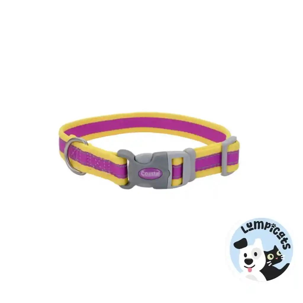Coastal Perro Pro Morado con Amarillo Collar Small 3/4" es un collar diseñado para ofrecer comodidad y estilo a tu perro. Aquí tienes una descripción detallada: Color: Combinación de morado y amarillo, creando un diseño vibrante y llamativo. Tamaño: Tamaño "Small" (Pequeño), adecuado para perros con un cuello de tamaño pequeño. Específicamente, tiene un ancho de 3/4 de pulgada, lo que lo hace adecuado para perros de razas pequeñas o medianas. Material: Hecho de materiales duraderos y resistentes, lo que garantiza una larga vida útil y resistencia al desgaste diario. Ajuste: Cuenta con una hebilla de ajuste fácil que permite ajustar el collar para que se ajuste cómodamente alrededor del cuello del perro. Diseño: El diseño del collar está pensado para maximizar la comodidad del perro mientras luce moderno y con estilo. Es ideal tanto para paseos cotidianos como para entrenamientos. Durabilidad: Es resistente a las inclemencias del tiempo, lo que lo hace adecuado para usar en diferentes condiciones climáticas.