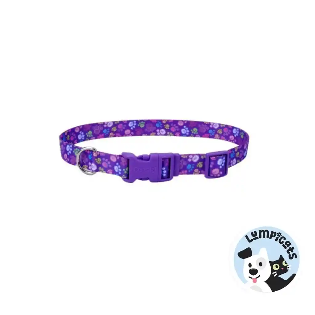 El Coastal Perro Styles Huellas Morado Collar X-Small 3/8" es un collar para perros diseñado con un estilo vibrante y atractivo, ideal para aquellos que buscan comodidad y un toque de color en los accesorios de su mascota. Este collar presenta un patrón de huellas en un tono morado, lo que le da un aire divertido y moderno. Aquí tienes una descripción detallada del producto: Tamaño: X-Small (extra pequeño), adecuado para perros de tamaño pequeño o razas miniatura. Ancho: 3/8" (aproximadamente 1 cm), ideal para perros con cuello delgado y pequeño. Material: Hecho de nylon resistente, lo que le proporciona durabilidad y confort. Diseño: El collar tiene un patrón de huellas, con un fondo morado vibrante, lo que lo hace tanto llamativo como juguetón. Cierre: Viene con un cierre de fácil ajuste, que permite que se adapte cómodamente al cuello de tu perro. Resistente y Seguro: Su material y diseño garantizan que sea seguro para el uso diario, ofreciendo resistencia al desgaste. Comodidad: El nylon suave no irrita el cuello de tu perro, asegurando que se sienta cómodo mientras lo usa.