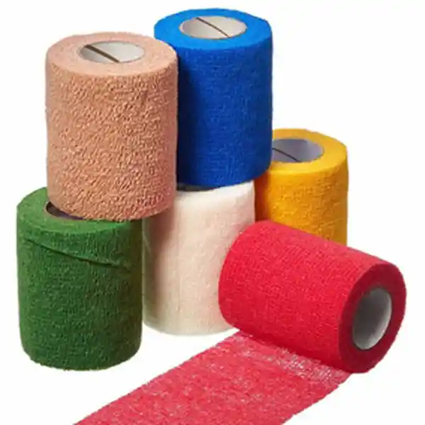 Venda elástica y cohesiva, esta venda contiene un material que hace que se adhiera sobre sí misma, pero no con otros materiales ni con la piel. Esta venda está diseñada para proporcionar la compresión necesaria, protección de apósitos y sujeción de dispositivos a la piel
