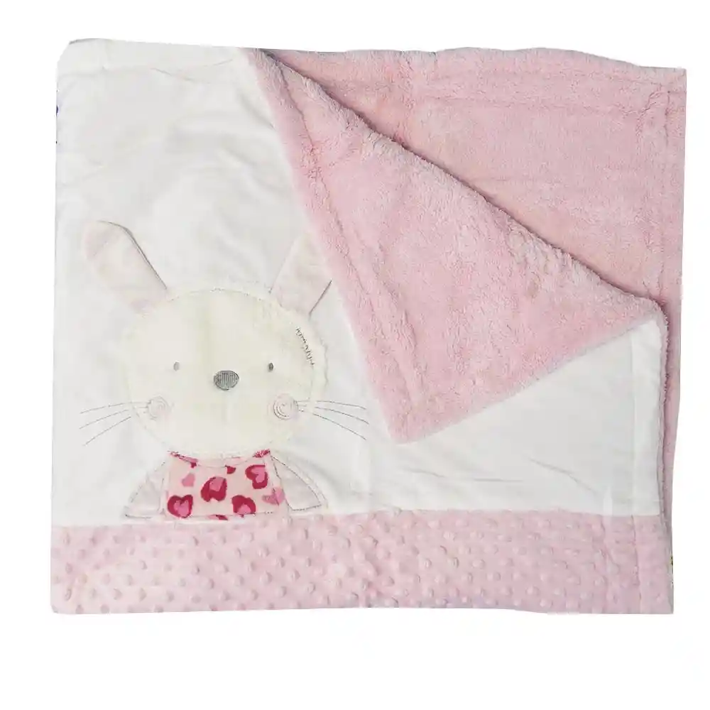 Cobija rosada con blanco de coneja.Composición: 100%poliéster. Medidas 90cm x 120cm. Envios a nivel nacional.