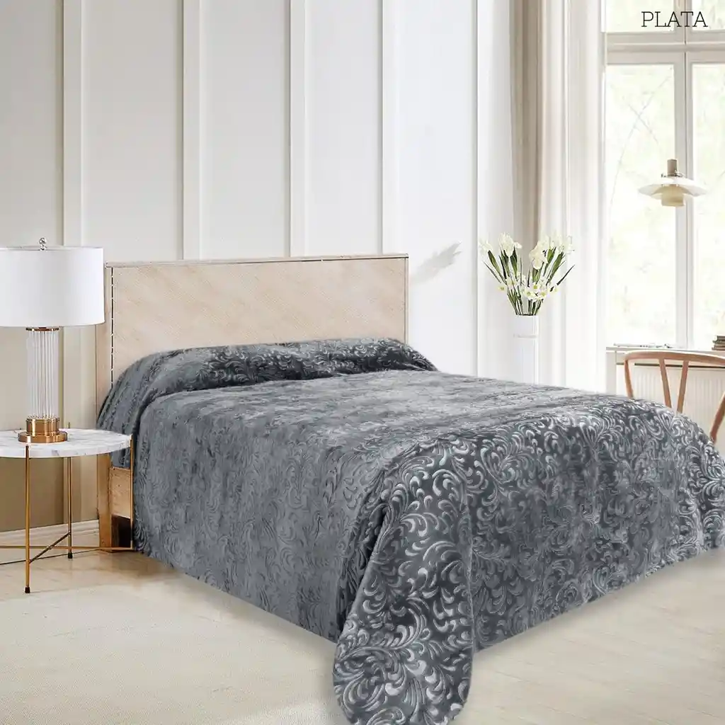Cobija térmica doble Butterfly plata Medidas: Para cama doble 140 x 190 cm Cobija de 200 x 220 cm Cobija diseñada para proporcionar calor y confort en climas fríos, de 3.5 kg, tacto super suave. Tipo española.