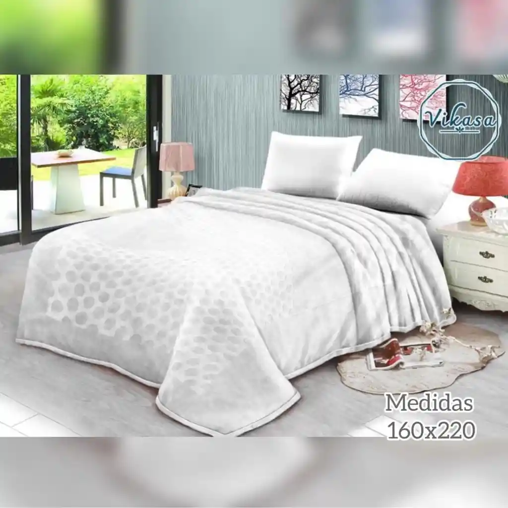 Cobija térmica doble Vikasa blanca Medidas: Para cama doble 140 x 190 cm Cobija de 200 x 240 cm Cobija diseñada para proporcionar calor y confort en climas fríos, de 4.5 kg, tacto super suave. Tipo española. Hipoalergénica