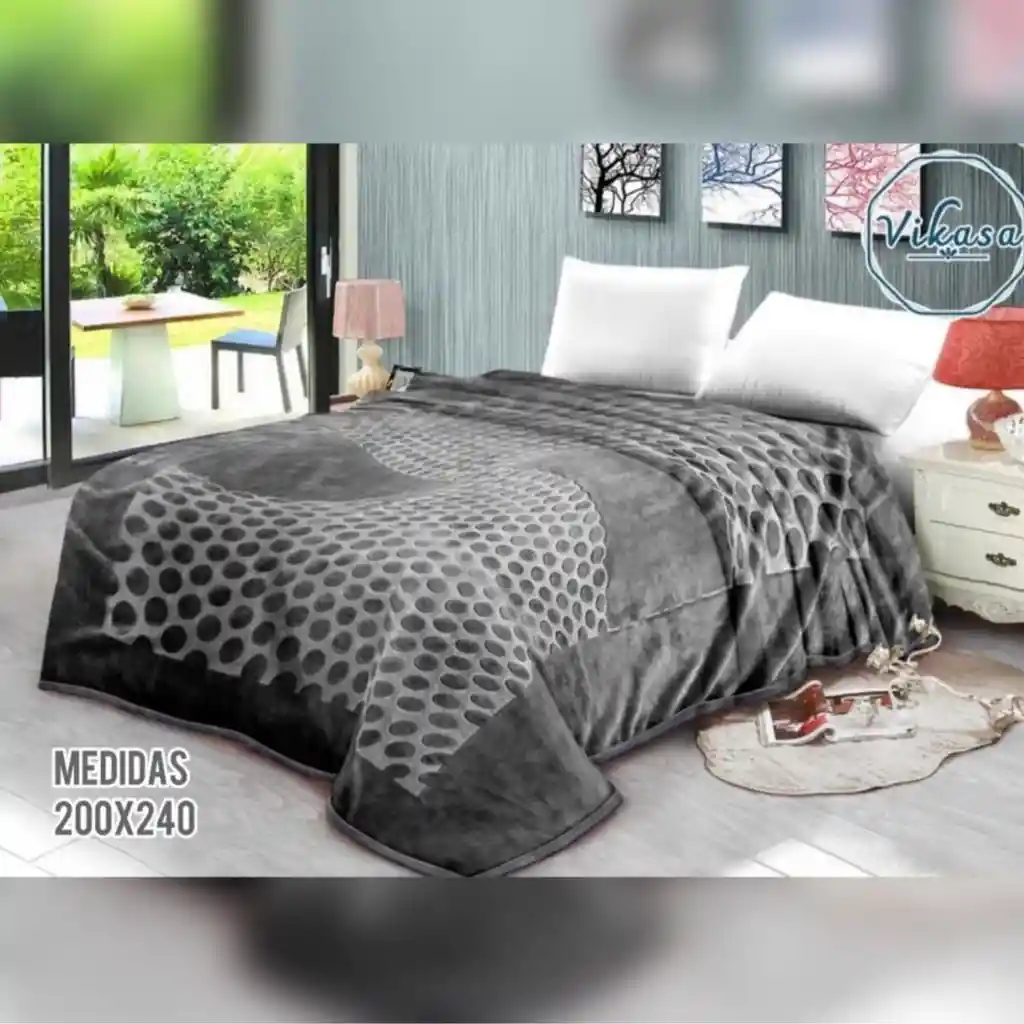 Cobija térmica doble Vikasa gris plata Medidas: Para cama doble 140 x 190 cm Cobija de 200 x 240 cm Cobija diseñada para proporcionar calor y confort en climas fríos, de 4.5 kg, tacto super suave. Tipo española. Hipoalergénica