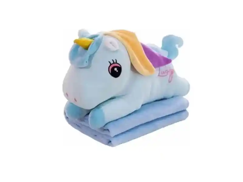 Manta suave y acogedora diseñada con la temática de unicornios, generalmente con colores suaves y decoraciones de unicornio como cuernos, orejas y crines.
