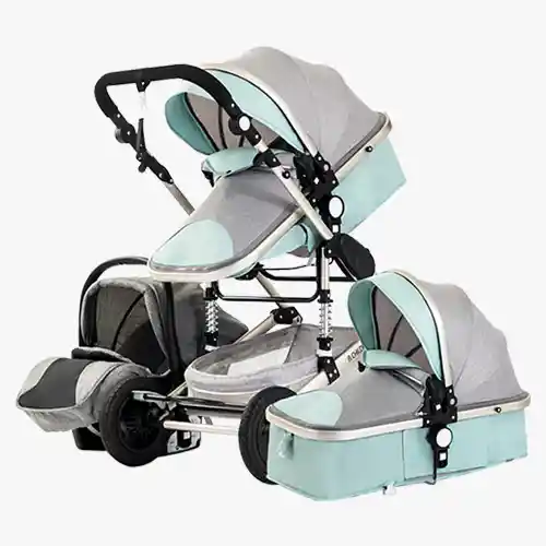 Coche europeo 3 en 1 el cual trae silla para carro que puedes adaptar a la base del coche. es moisés y se puede adaptar igual como silla para cuando el bebé este mas grande tiene llantas encauchadas y amortiguación en la parte delantera y central