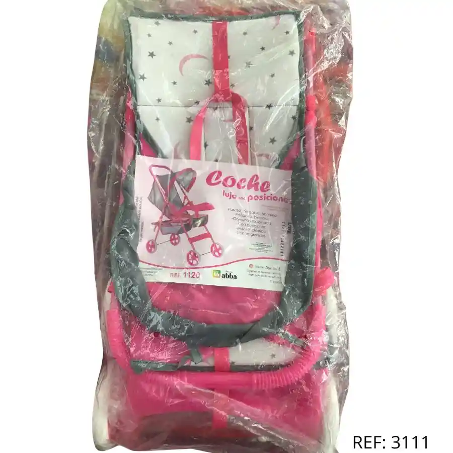 Coche gris con lunas y estrellas. Elegante, reclinable y muy práctico para juego diario.