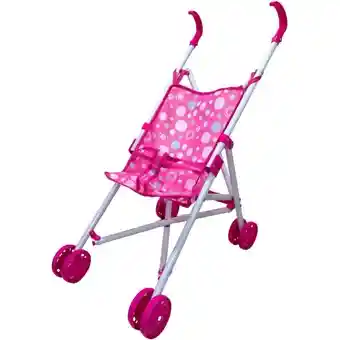 Es de metalCoche para muñeca diseño de paraguasEdad sugerida: 2+Divertido coche de metal de 4 ruedas para pasear a tu muñeca, con diseño de apertura estilo paraguas para mayor comodidad al momento de llevar a pasear.alto 52ancho 26largo 49 Al recibir el producto verifique el estado del mismo, si evidencia que se encuentra fracturado, rayado, sucio, deteriorado, incompleto o presenta fallas en su funcionamiento comuníquese inmediatamente con nosotros para dar solución al problema. Importante: Mientras damos solución por favor no haga uso del producto hasta tener una respuesta. La garantía del producto solo es válida por defectos de fábrica no por el uso inadecuado del mismo.