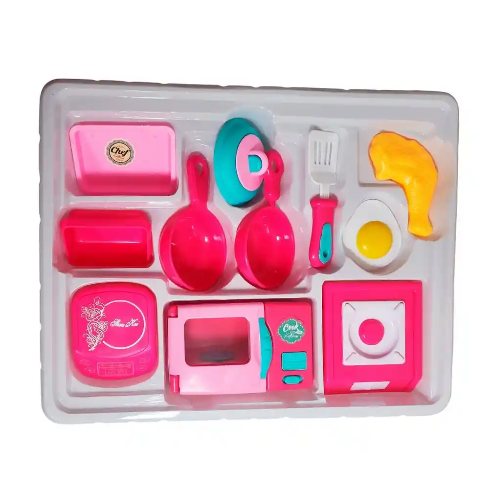 Divertido set de cocina infantil Kitchen Play Set, ideal para pequeñas chefs que disfrutan preparar sus platillos favoritos. Incluye microondas, estufa, ollas, sartenes, espátula y alimentos de juguete, todo en atractivos colores rosados y turquesa. Perfecto para estimular la imaginación, el juego de roles y la creatividad en los niños mientras se divierten cocinando como los grandes. Recomendado para mayores de 3 años. Ficha Técnica: Materiales : Plástico ABS Dimensiones: 33 cm x 27 cm x 7 cm Edad recomendada : + 3 años en adelante Certificado de conformidad: SL-CS-210044 Referencia: C4623 Términos de garantía: Para defectos de fábrica o retractos: Por favor revise el producto apenas lo reciba y antes de usarlo. No aplican ley de retracto o defectos de fábrica luego de usar el producto. Se manejan máximo 5 días para reportar defectos de fábrica (por ejemplo, producto funciona mal, piezas faltantes, rotas, etc). Para hacer efectiva la devolución el producto debe devolverse con el empaque original, el cual debe estar en buen estado, incluir todos los documentos y las partes completas y sin daños.