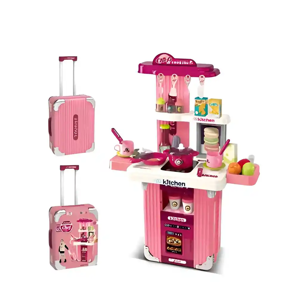 Lleva la diversión y la creatividad a otro nivel con la Cocina Infantil Portátil Tipo Maleta, el juguete ideal para niñas y niños que disfrutan del juego de roles y la imaginación. Este set completo recrea una auténtica experiencia de cocina, con múltiples accesorios y un diseño práctico que se transforma fácilmente de maletín a cocina lista para jugar. Características principales: Diseño 2 en 1: se convierte de una maleta compacta a una cocina completa en segundos. Incluye accesorios de cocina: ollas, sartenes, cubiertos, alimentos y utensilios para una experiencia de juego realista. Material resistente y seguro: fabricada en plástico de alta calidad, libre de bordes filosos y apto para niños. Fácil de transportar: su diseño tipo maleta permite llevarla a cualquier lugar sin complicaciones. Colores vivos y atractivos: estimulan la atención y la imaginación de los más pequeños. Montaje sencillo: no requiere herramientas, ideal para jugar en casa, jardín o guardería. Beneficios: Fomenta la creatividad y el juego simbólico, permitiendo que los niños imiten actividades cotidianas de forma divertida. Desarrolla la coordinación mano-ojo y la motricidad fina. Promueve la socialización y el trabajo en equipo al compartir el juego con otros niños. Enseña valores como el orden y la responsabilidad, al guardar los accesorios en la maleta al finalizar. Modo de uso: Abre el maletín y despliega las piezas según la guía de armado. Coloca los accesorios en su lugar para crear una cocina completa. Disfruta del juego y guarda todo nuevamente en la maleta al terminar. Cuidados del producto: Limpiar con un paño húmedo y secar bien después de cada uso. No exponer directamente al sol por periodos prolongados. Evitar el contacto con agua real o líquidos. Guardar en un lugar seco y ventilado. Incluye: Cocina portátil tipo maleta. Accesorios de cocina (ollas, utensilios, alimentos de juguete, entre otros). Manual de armado ilustrado. Ideal para regalar y garantizar horas de diversión, imaginación y aprendizaje. Con la Cocina Infantil Portátil Tipo Maleta, jugar a cocinar nunca fue tan divertido, práctico y educativo.