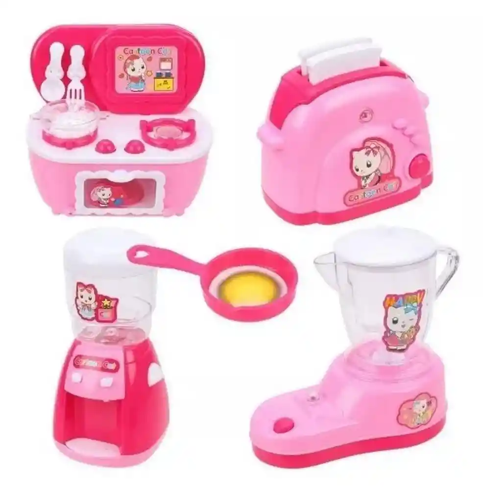 ¡Descubre la diversión culinaria con nuestro set de cocina de juguete! Incluye utensilios, sartenes, mini estufa , licuadora y tostadora para un emocionante juego de rol. Las niñas pueden crear y cocinar mientras desarrollan habilidades y dan vida a su imaginación. ¡Un mundo mágico de diversión en un solo conjunto de juguetes! Ficha Técnica: Dimensiones del empaque : 26 cm x 30 cm x 8 cm Material : Plástico ABS no toxico Edad mínima recomendada : Mayores de 3 años Referencia: JM603 Certificado de conformidad: SL-CS-210044 ** _Para defectos de fábrica o retractos: \_Por favor revise el producto apenas lo reciba y antes de usarlo. No aplican ley de retracto o defectos de fábrica luego de usar el producto. Se manejan máximo 5 días para reportar defectos de fábrica (por ejemplo, producto funciona mal, piezas faltantes, rotas, etc). Para hacer efectiva la devolución el producto debe devolverse con el empaque original, el cual debe estar en buen estado, incluir todos los documentos y las partes completas y sin daños.
