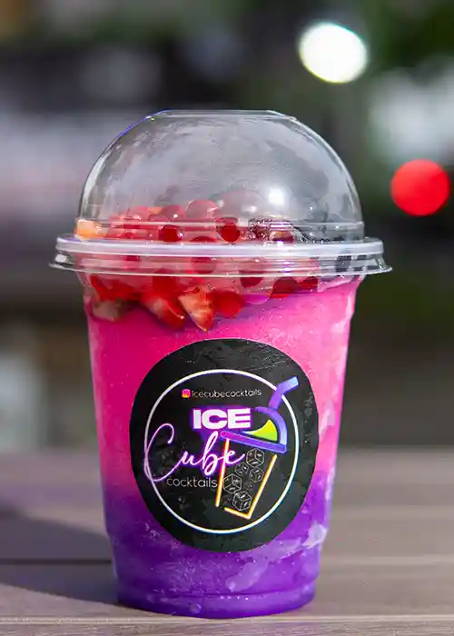 refrescate con una combinación de los deliciosos y exquisitos sabores del la sandia, uva, fresas y los frutos rojos! con trozos de fresas y perlas explosivas!