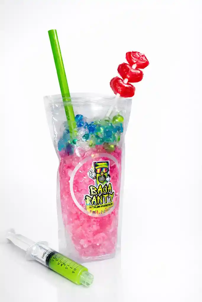 coctel con chicle y whisky incluye perlas explosivas, paletas y delicioso jeringazo a base de vodka