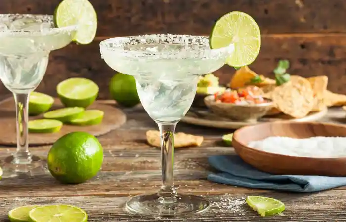 Margarita tradicional, ingredientes: Triple sec, Tequila, y sumo de limón