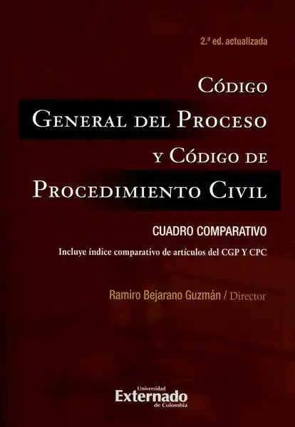 Ramiro Bejarano Guzmán. El 1 de Enero de 2016 Empezó a Regir Para Todo el Territorio Nacional el Código General Del Proceso. Dicha Implementación Fue Lograda de Manera Gradual Mediante la Expedición de Acuerdos Por Parte Del Consejo Superior de la Judicatura; en el Campo Civil. Sin Embargo; Con Anterioridad a Dicha Fecha; Este Estatuto ya Empezó a Aplicarse Como Norma Supletoria en Los Procesos Contencioso-Administrativos y Algunos Llevados Por Autoridades Administrativas en Ejercicio de Funciones Jurisdiccionales. Igualmente; la Corte Constitucional Tuvo la Oportunidad de Emitir Algunos Pronunciamientos Alrededor de la Constitucionalidad de Varias Normas Contenidas en Este Código. Por Esta Razón la Universidad Externado de Colombia y su Departamento de Derecho Procesal Ofrecen Esta Segunda Edición Del Código General Del Proceso Comparado Con el Código de Procedimiento Civil. En Esta Segunda Edición; Además Del ya Conocido Código Comparado; Podrán Encontrarse Como Anexos: la Referencia Concreta a Los Pronunciamientos de Constitucionalidad Realizados Por la Corte Constitucional Sobre Algunas Normas Del Código General Del Proceso; Los Diversos Acuerdos Expedidos Por el Consejo Superior de la Judicatura Que Dieron Implementación al Código General Del Proceso; el Decreto 1736 de 2012 y su fe de Erratas; Por Medio de Los Cuales se Introducen Algunas Modificaciones al Código General Del Proceso; la Ley 1561 de 2012; Por la Que se Establece un Proceso Verbal Especial Para Otorgar Títulos de Propiedad al Poseedor Material de Bienes Inmuebles Urbanos y Rurales de Pequeña Entidad Económica; Sanear la Falsa Tradición y se Dictan Otras Disposiciones; Así Como Nuevas Herramientas de Consulta Que Facilitan la Labor de Comparación. ISBN: 9789587900859