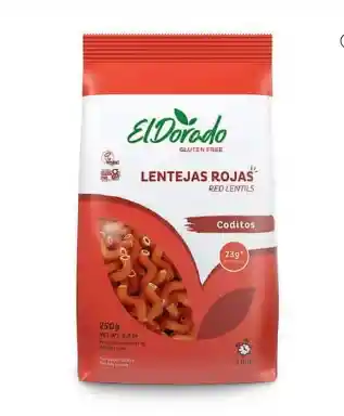Pasta de lentejas rojas marca El Dorado 250 g, libre de gluten. Apto para veganos, vegan, vegetariano, plant based, libre de ingredientes de origen animal.