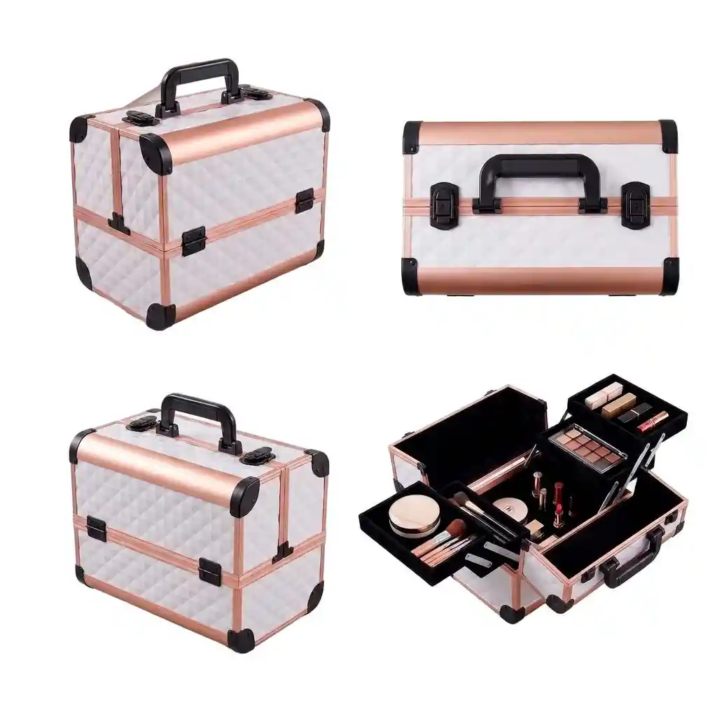 Esta elegante cosmetiquera profesional de diseño rígido es la solución definitiva para organizar y transportar tu kit de belleza con total seguridad y estilo. Fabricada con una estructura de aluminio reforzado y paneles con acabado texturizado en 3D de alta resistencia, protege tus cosméticos contra golpes y caídas, mientras que su interior desplegable con bandejas multinivel permite clasificar brochas, paletas y envases de forma eficiente. Su amplio compartimento inferior es ideal para objetos de mayor tamaño, y su asa ergonómica superior, junto con el sistema de cierre seguro, garantizan un transporte cómodo y privado. Con un acabado sofisticado en tonos rosa metálico y negro, este cofre no solo optimiza tu espacio de trabajo, sino que también añade un toque de profesionalismo a tu rutina de belleza diaria, convirtiéndose en el accesorio indispensable para maquilladores, manicuristas y amantes del cuidado personal. FICHA TÉCNICA Producto: Maletín Neceser Profesional para Maquillaje Estructura: PVC Paneles: Acabado diamante 3D resistente a rayones Interior: 4 Bandejas desplegables forradas en fieltro/vinilo Almacenamiento: Compartimento base de gran capacidad Seguridad: Cierres de pestillo con sistema de seguridad (broches de presión) Portabilidad: Asa de mano superior ergonómica antideslizante Dimensiones: 22 cm de largo x 31 cm de ancho x 27 cm de alto (aproximadas) Limpieza: Material exterior impermeable de fácil mantenimiento Garantía: 1 mes por defectos de fábrica POLÍTICA DE GARANTÍA Y RETRACTO Este producto cuenta con 1 mes de garantía por defectos de fábrica (como fallas en las bisagras, remaches sueltos o deformaciones del marco); por favor revise el maletín al recibirlo, ya que no aplica garantía por abolladuras, cortes en el forro interno o daños causados por sobrecarga posteriores al uso. Dispone de máximo 5 días para reportar novedades (piezas faltantes o daños de transporte). Para cualquier devolución por retracto, es indispensable entregar el producto en su empaque original en perfecto estado y sin señales de haber sido utilizado con maquillaje.