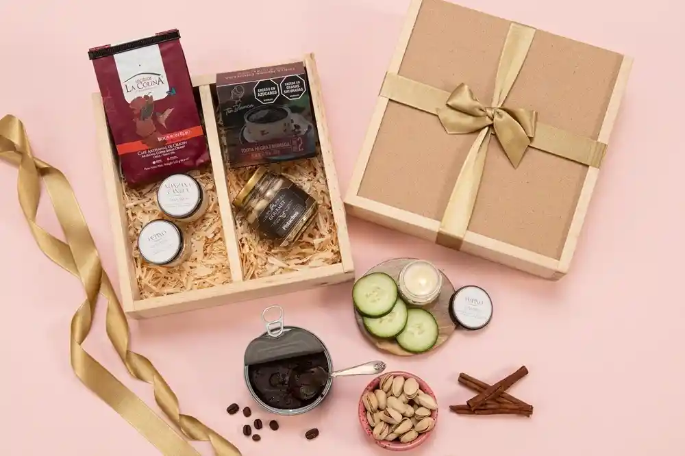 Todo lo que sientes expresado en un regalo! Café La Colina (125g), pistachos con sal (40g aprox), torta negra envinada (100g aprox) y 2 mini velas aromáticas