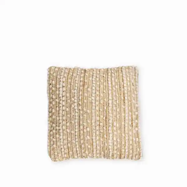 Decorativo Con Tejido Natural en Yute Lana y Algodón. Caracterizado Por Sus Líneas Geométricas de Color Beige y Natural Que Aportan Encanto Artesanal y Diseño a Los Diversos Espacios Como Salas de Estar Alcobas y Muebles Con Calidez y Naturalidad.