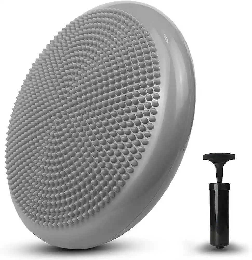 Cojin inestable COJIN INESTABLE Marca: G-TECHZ Referencia: Cojin inestable para ejercicios de equilibrio, propiocepcion, yoga, rehabilitacion de rodilla y lesiones de tobillo. Textura granulosa que proporciona retroalimentacion sensorial a las terminaciones nerviosas de los pies a la vez que provee la sensacion de masaje. Superficie antideslizante que da estabilidad al disco. Diferente diseño en cada lado para trabajar en doble posición. Trabajo de pie o sentado para ejercicios de equilibrio de postura. Fabricado en material flexible para disminuir el impacto en el entrenamiento. Ligero y portatil. Incluye bomba para inflarlo. Fabricado en material flexible para disminuir el impacto en el entrenamiento. Ligero y portatil. Incluye bomba para inflarlo. Dimensiones: 36 cm de diámetro. Uso: Institucional y Profesional.