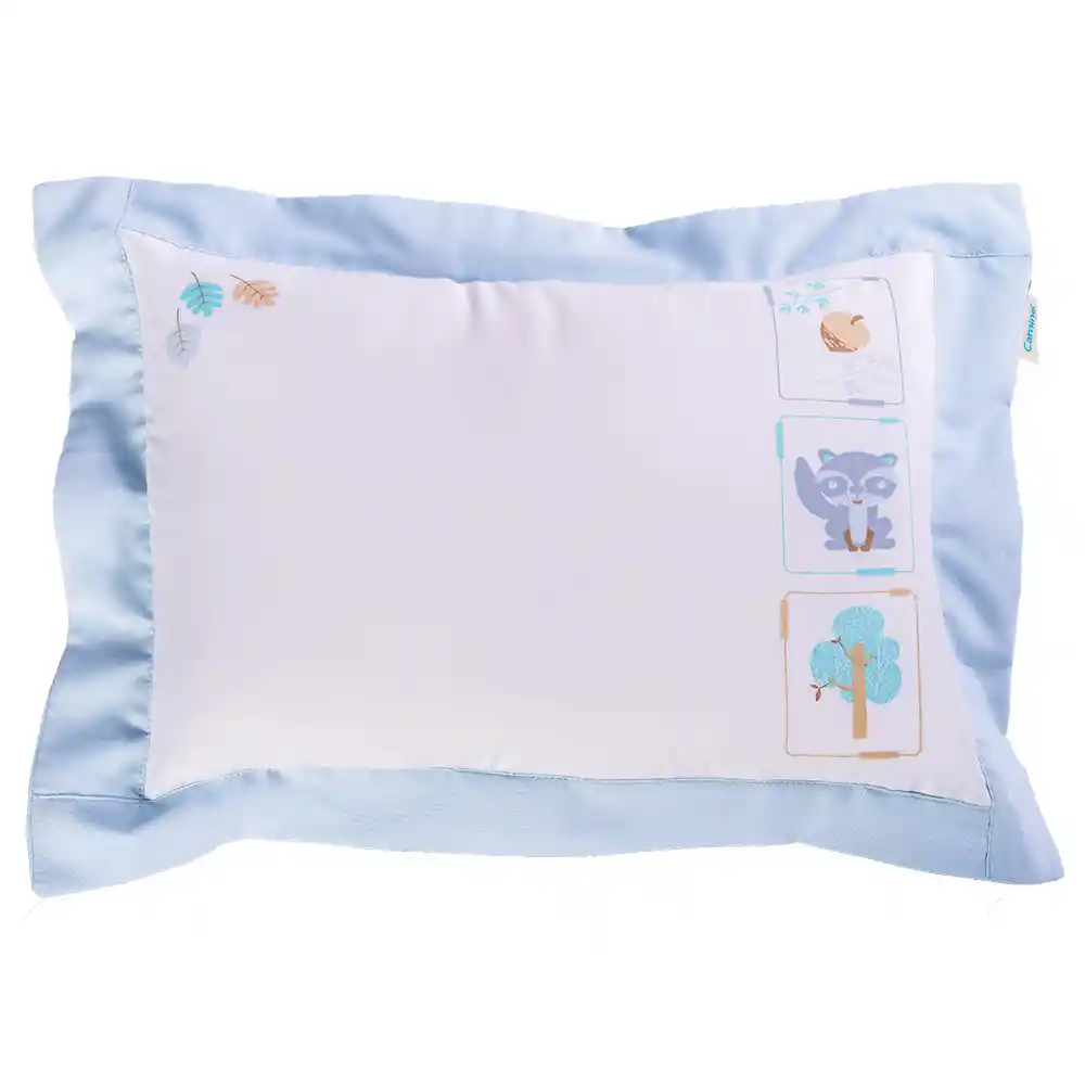 Medidas: 45 cm x 34 cm Composición: Forro: 50% poliéster – 50% algodón – Relleno: 100% fibra siliconada Color: Blanco / Azul Para bebés de 0 a 24 meses