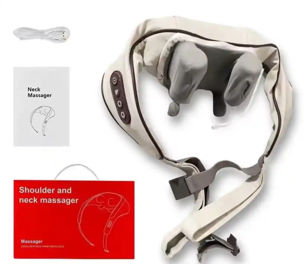 Masajeador Trapecio. Seis garras, dos juegos de cabezales de masaje 3D con cuatro grandes contactos de masaje que cubren el hombro y el cuello, músculos trapecios, lo que permite que su cuello se relaje y ya no se sienta cansado e incómodo. Mejora la tecnología de manos humanas. Simula el masaje realizado por un masajista, restaurando profundamente la sensación de masaje de agarrar, pellizcar y amasar alternando entre el pulgar y La Palma, alivia eficazmente las molestias causadas por el hombro y el cuello arqueados durante mucho tiempo. La Batería 2000mAh, tiempo de carga 3 horas, uso 10 minutos, se puede usar 7-8 veces. No solo se pueden masajear los hombros y el cuello, sino también las piernas, las manos y la cintura. Tiene función de calefacción suave y cómoda.