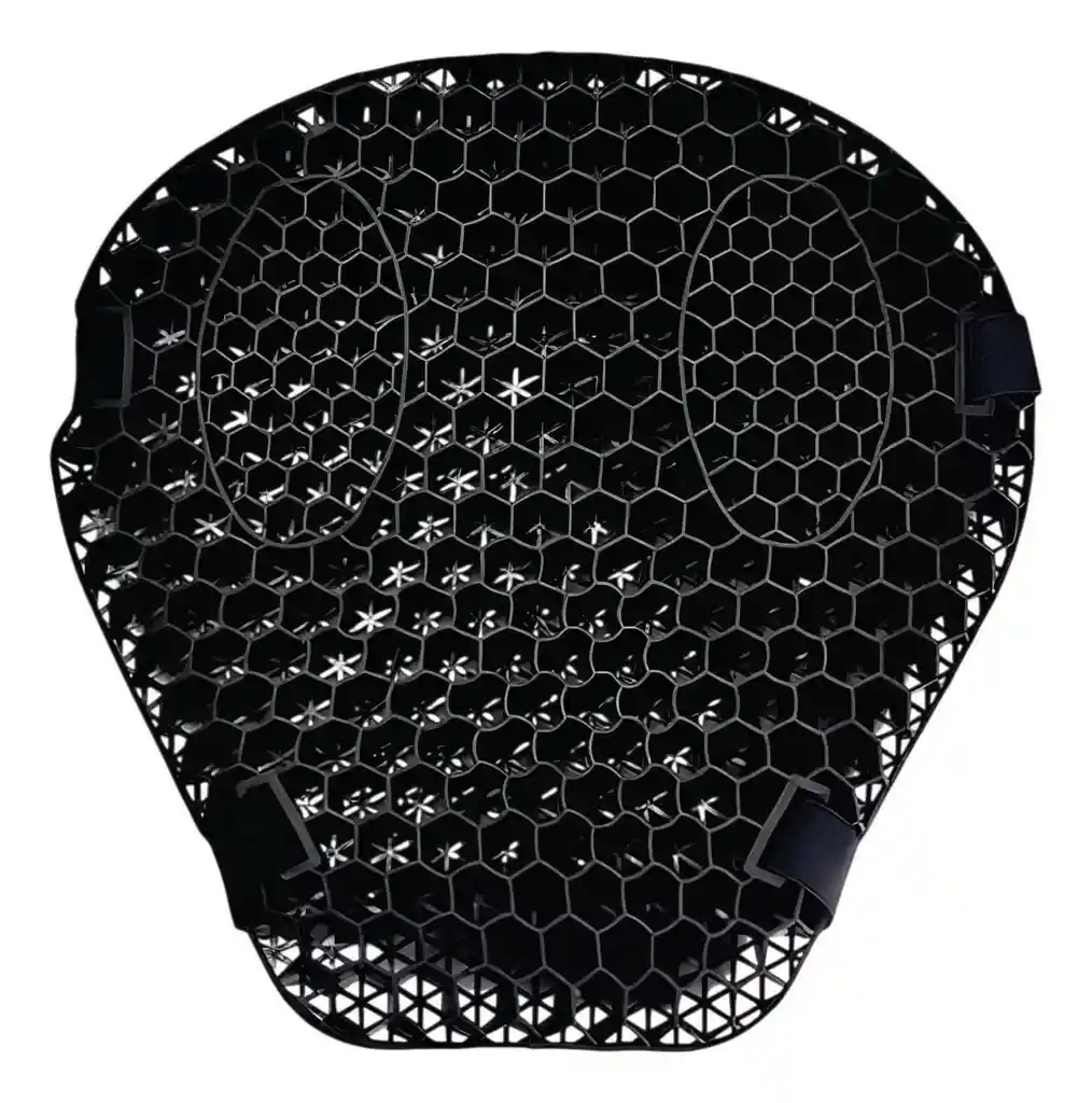 Almohadilla Universal Para Motocicleta de Gel La comodidad también se lleva a otro nivel cuando te sientas en este extraordinario cojín. Está diseñado para que el aire frío pueda circular a través de cada sección para una comodidad y frescura instantáneas, así como soporte esencial para la columna vertebral y la postura. Partículas antideslizantes y fijación de doble vendaje, más control y estabilidad. La parte inferior antideslizante se mantiene en su lugar para que no se deslice en su asiento. Debido al diseño de panal de abeja, el agua no permanece en la funda del asiento de la motocicleta. Incluso si llueve, la funda del asiento se seca rápidamente. El protector de malla abierta drena y elimina el agua y se seca casi al instante para que no te empapes la parte inferior si tu moto se moja. Nuestra funda de asiento de moto 3D absorbe los impactos y alivia el estrés. En la conducción de alta velocidad, puede amortiguar en gran medida el amortiguador de choque y reducir la lesión directa de la vibración a largo plazo. Almohadilla de asiento de malla para motocicleta que ayuda a fluir el aire mientras conduces.