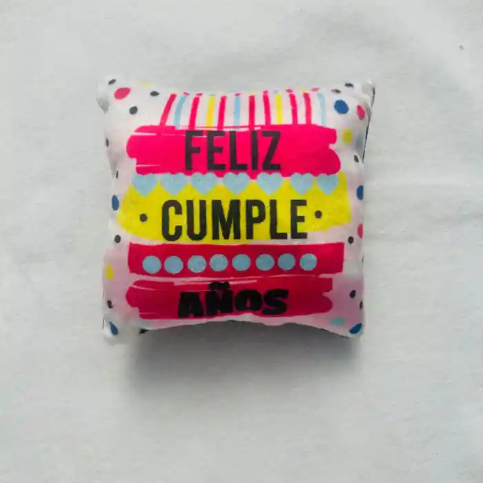Cojin Pequeño Feliz Cumpleaños Ref 3 x 1 Unidad 14 cm de alto x 14 cm de ancho. Impreso por 1 sola cara Estos hermosos cojines son el complemento perfecto para cualquier regalo, Cada cojín está cuidadosamente elaborado con materiales de alta calidad, asegurando durabilidad y comodidad. Características: Material: Tejidos seleccionados para una suavidad excepcional y una larga durabilidad. Relleno: Espuma siliconada de primera calidad, que mantiene su forma y ofrece un soporte cómodo. Lavado: Diseñados para ser fáciles de lavar, estos cojines pueden mantenerse limpios y frescos sin esfuerzo. Diseños: Contamos con una variedad de patrones divertidos y coloridos, ideales para agregar un toque personal y alegre a tu regalo. Perfectos para apoyar en el sofá, decorar la oficina o simplemente para dar un abrazo.