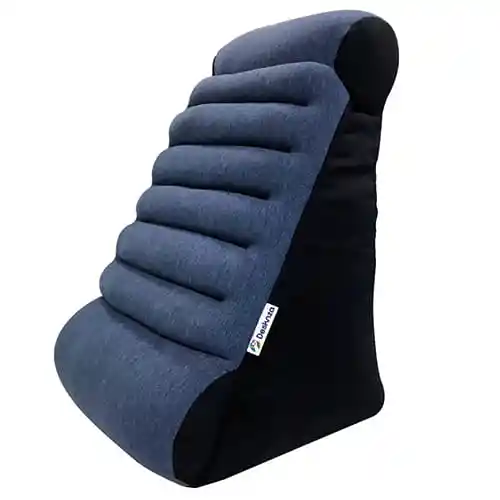 El Cojín tv Premium ofrece soporte ergonómico para la espalda, cuello y lumbar, evitando lumbalgias. Su diseño triangular permite dos ángulos de uso y es ideal para ver TV, leer o descansar cómodamente sin que el cojín se hunda.