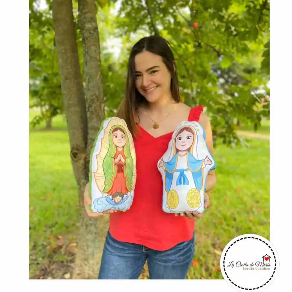 "Virgen de Guadalupe, Virgen Milagrosa. Tamaño 35 cm alto Material de elaboración es tela poliéster con acabado de gamuzado liso, trae cierre invisible de 15Cms, relleno de algodón siliconado antialérgico. La calidad de este relleno es de las lo mejores, usamos este material especialmente por lo salubre Fabricación colombiana "