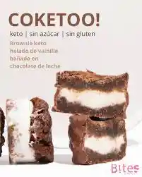 brownie keto con helado de vainilla cubierto con chocolate de leche