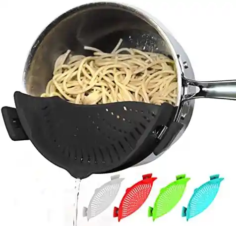 Diseño exclusivo: el clip de silicona especialmente diseñado en el colador se puede utilizar para casi todas las ollas redondas, sartenes, cuencos grandes y pequeños, incluso los que tienen un labio. Ahorro de espacio: El colador de alimentos de silicona plegable, compacto y pequeño es fácil de usar y almacenar en una cuarta parte del tamaño de un colador tradicional. Ideal para espacios limitados en la encimera. Seguro y duradero: Este colador de silicona con clip está hecho de grado alimenticio y está aprobado. Completamente libre de bisfenol A, resistencia al calor de hasta 230 grados, anticorrosión. Se puede lavar con agua tibia y jabón, conveniente para limpiar. Fácil de usar: Este colador de alimentos de silicona puede mantener la comida en la olla durante el proceso de filtrado, eliminando así los problemas de transferencia de alimentos entre el colador y la olla. Utilice 2 clips resistentes para colocar en la mayoría de ollas, sartenes y tazones. Puede drenar fácilmente el agua de pasta, fideos, grasa de vaca, verduras, frutas e incluso patatas, tomates y otros alimentos. Escurridor de agua: con este colador de alimentos, ¡el drenaje se vuelve conveniente y simple! Solo tienes que sujetarlo al borde de la olla después que cocine la comida, drene el agua usando este colador de alimentos. El diseño curvo evita que la comida se escape, ¡lo cual es realmente conveniente! Características: 1. El Mango tiene un diseño ergonómico y la superficie de presión es cómoda de usar y el diseño de orificios grandes facilita el drenaje. 2. Enganche en el lado de la olla o el cuenco de arroz e incline su olla para drenar. 3. La parte inferior está diseñada con una pieza de sujeción, que se puede sujetar en el borde de cualquier olla, lo que es conveniente para escurrir. Especificaciones: Nombre: escurridor de silicona Material: silicona + Acero inoxidable 430 Color: Gris Tamaño: aproximadamente 22,5 x 9 cm INCLUYE: 1 Colador de silicona Casa Love