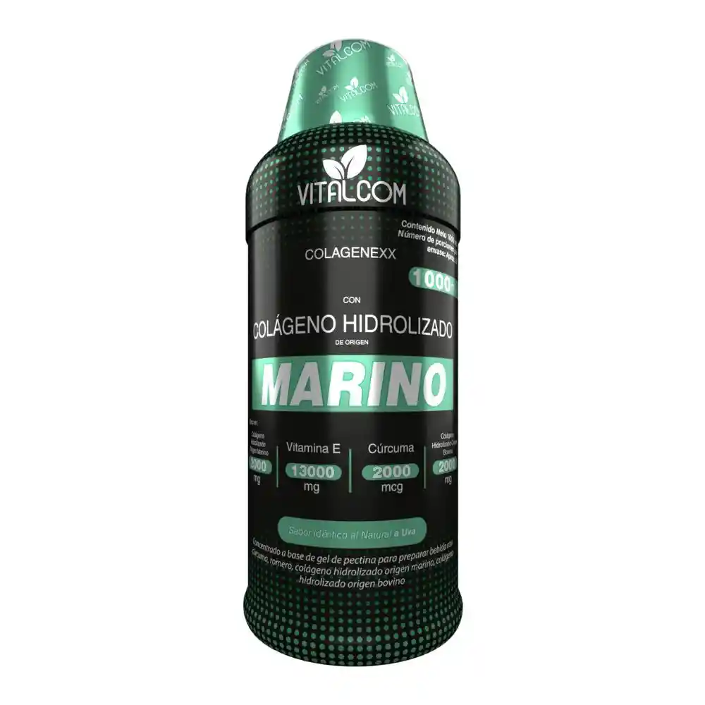 Colágeno hidrolizado marino líquido que mejora la elasticidad de la piel y fortalece cabello, uñas y articulaciones. Beneficios: -Mejora la firmeza y elasticidad de la piel -Fortalece cabello y uñas -Apoya la salud articular -Favorece la regeneración celular Cantidad: 1 L Modo de uso: Tomar una porción diaria sola o diluida en agua, o según recomendación profesional. ¡Nutre tu cuerpo desde adentro y luce una piel más saludable cada día!