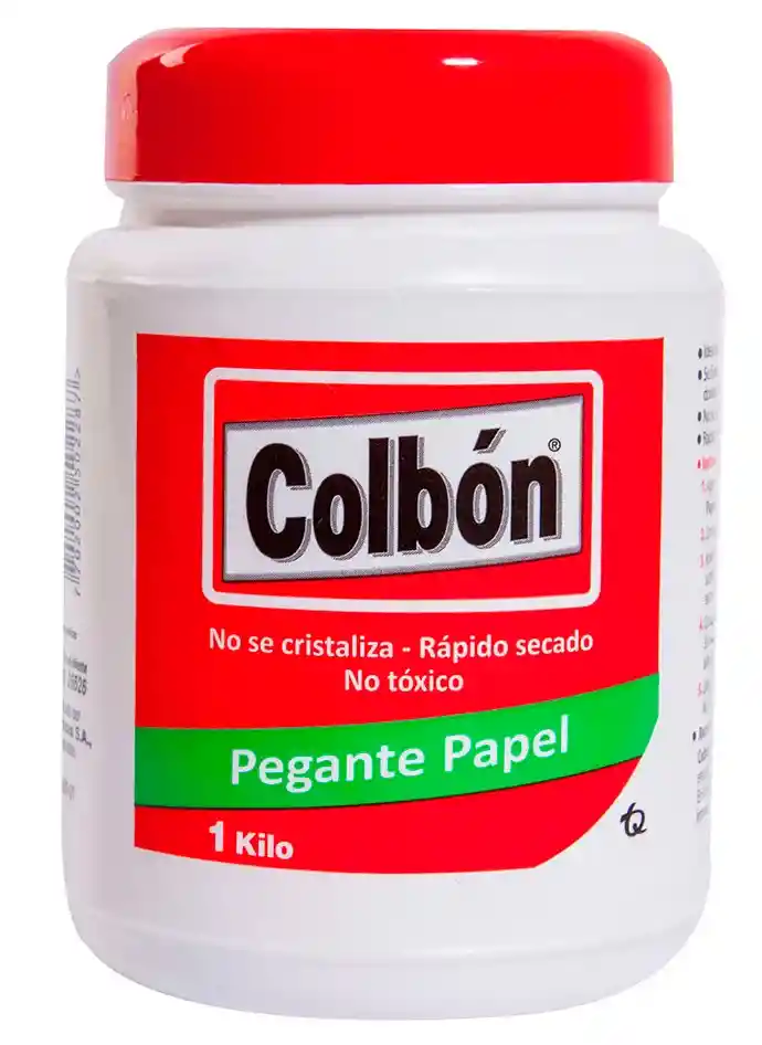 colbón 1 kilo pegante para papel ega Peso de la unidad: 1 kg Cantidad de packs: 1 Unidades por pack: 1 Formato de venta: Unidad Superficies aptas: carton. Es lavable.