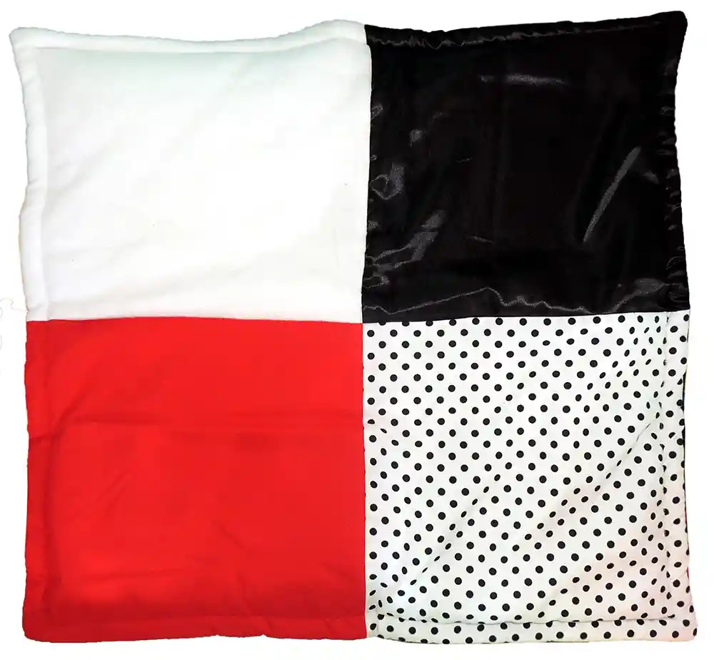 Material: Telas diferentes texturas, guata, ping-pong, pito plástico. Tamaño: 85 x 85 cm.