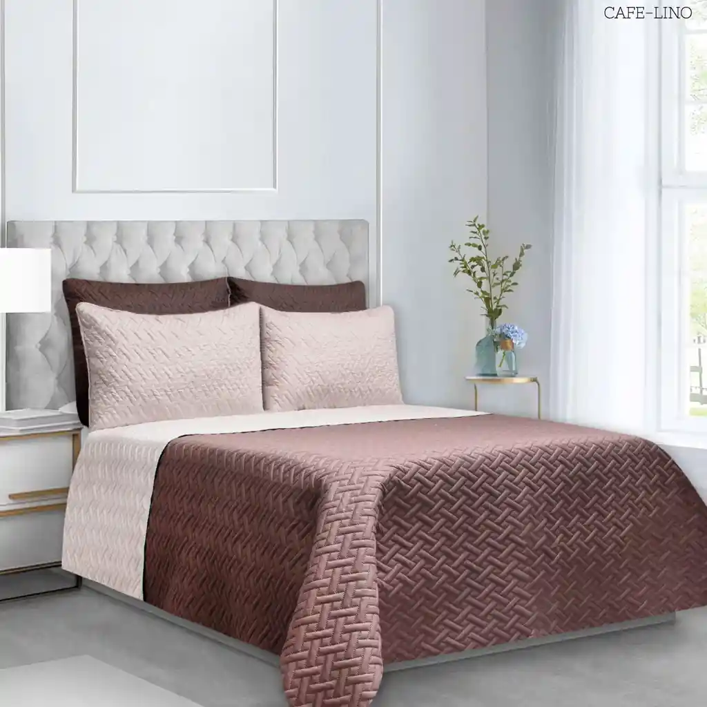 Colcha Doble Faz Fiore Café - Beige Claro para Cama Sencilla (100 X 190 cm). Colcha Doble Faz, prensado con termosellado Incluye: 2 piezas: Una (1) colcha de ( 170 X 240 cm) Una (1) funda de almohada ( 50 X 75 cm) Material: Exterior: Microfibra 100% Poliéster Relleno: Fibra Siliconada. Empaque: Ancho: 35 cm Largo: 53 cm Alto: 21 cm Peso: 1900 Cuidados: No usar detergente con blanqueador No dejar en remojo, ni cepille Lavar con prendas de igual tono En máquina, lavar en ciclo suave Secar a la sombra o máquina en el ciclo de planchado