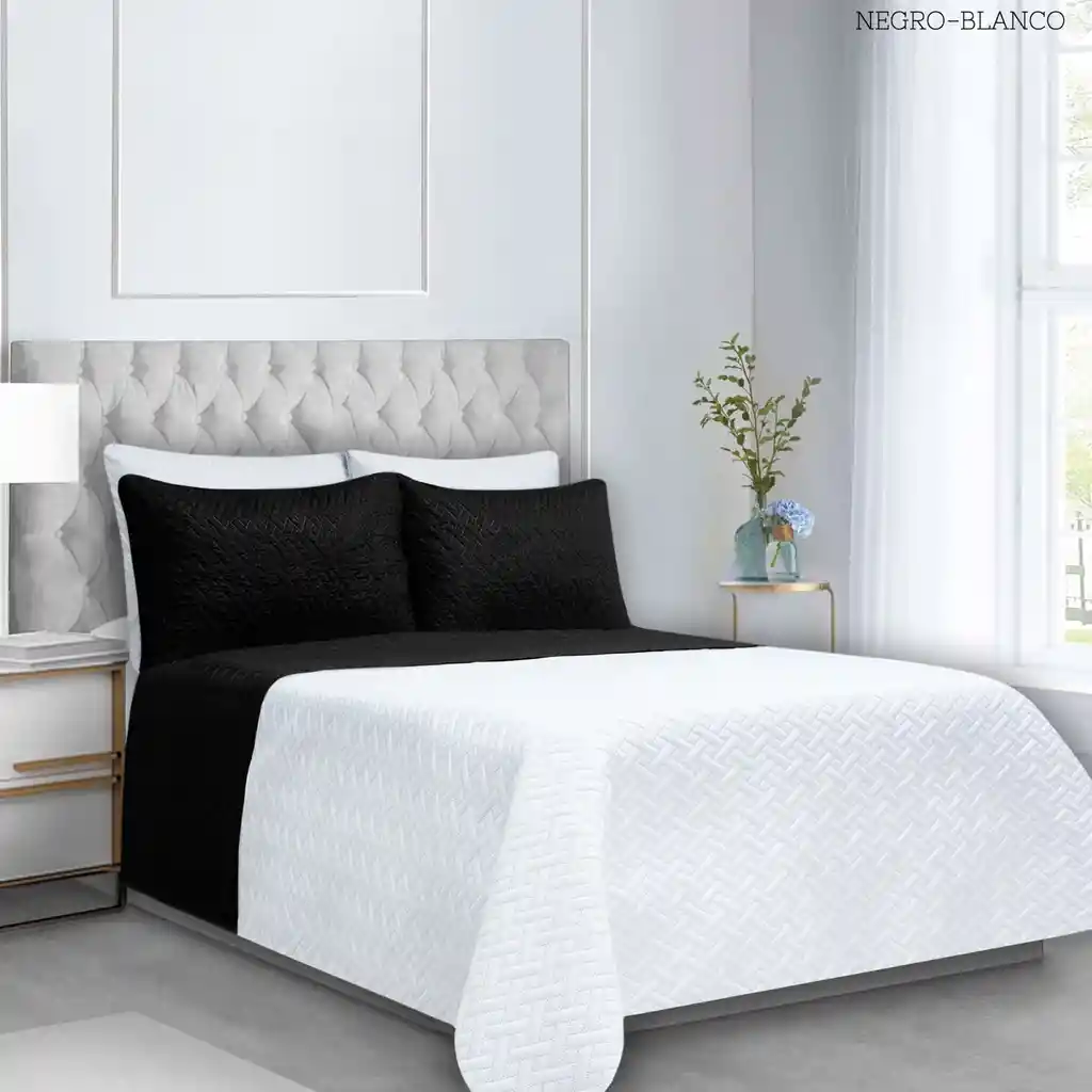 Colcha Microfibra Fiore Doble Faz Unicolor para Cama King (200 X 200 cm). Unicolor Blanco por un lado, por otro Negro. Nota el color puede variar al producto físico debido a resoluciones de las pantallas donde lo mire Colcha Doble Faz, prensado con termosellado Incluye: 3 piezas: Una (1) colcha de ( 270 X 240 cm) Dos (2) fundas de almohada ( 50 X 75 cm) Material: Exterior: Microfibra 100% Poliéster Relleno: Fibra Siliconada. Medidas de empaque: Ancho: 40 cm Largo: 49 cm Alto: 15 cm Peso: 2300 Cuidados: No usar detergente con blanqueador No dejar en remojo, ni cepille Lavar con prendas de igual tono En máquina, lavar en ciclo suave Secar a la sombra o máquina en el ciclo de planchado