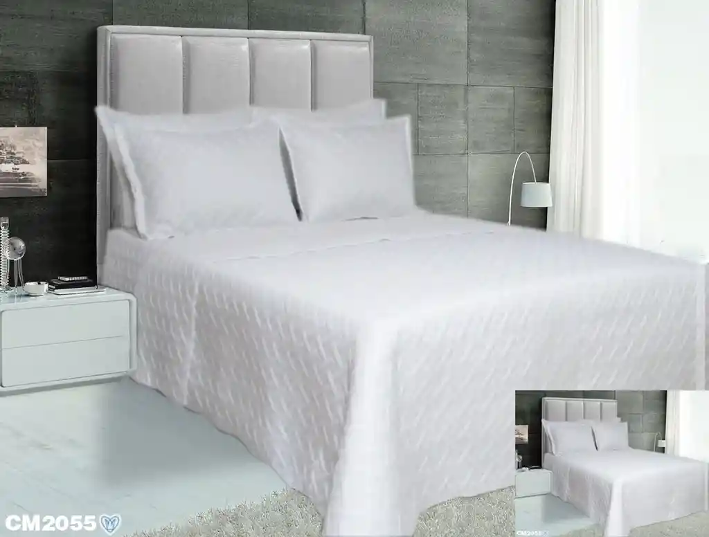 COLCHA ESPAÑOLA DOBLE Diseño doble faz microfibra color: Blanco dimensiones: 2.20 X 2.40 m 3 piezas