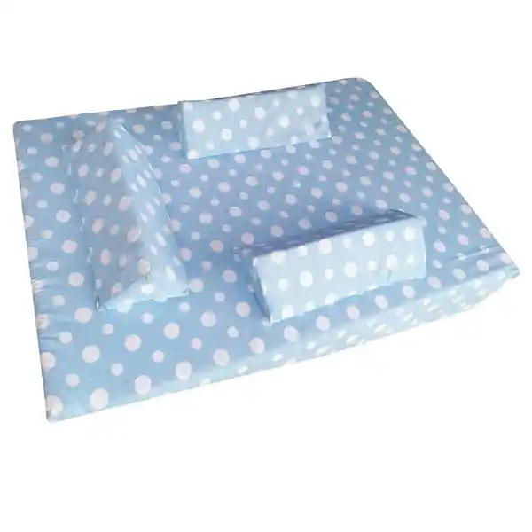 Colchón Mobiliario Bebés Antirreflujo Azul Para Bebé Con el Tamaño Ideal Para Cunas, Colecho, Cuna Corral o en la Cama de Los Padres. Manteniendo al Bebé Cómodo y Seguro. Suave y Cómodo, Reduce el Riesgo de Ahogamiento Por Reflujo Gastroesofágico o Broncoaspirar. Recomendado Por Pediatras.Tela Suave Hipoalergénica. 3 Posicionadores. Espuma en Poliuretano Flexible Forro Interno Impermeable Para Mayor Higiene y Conservación. Forro Externo Lavable Con Cierre. Dimensiones: 70 Cm X 47 Cm X 13 Cm 1 U