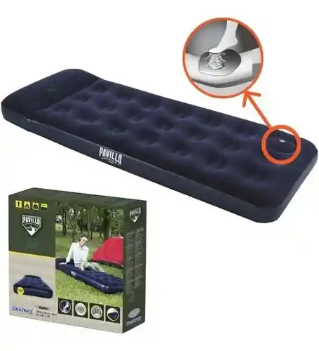 Colchon Inflable Sencillo Dimensiones del colchón : 1.85m x 76 cm x 28 cm Dimensión de la almohada: 22cm. Capacidad máxima: 150 Kg Característica: Colchón Sencillo , Con superficie aterciopelada Material : PVC