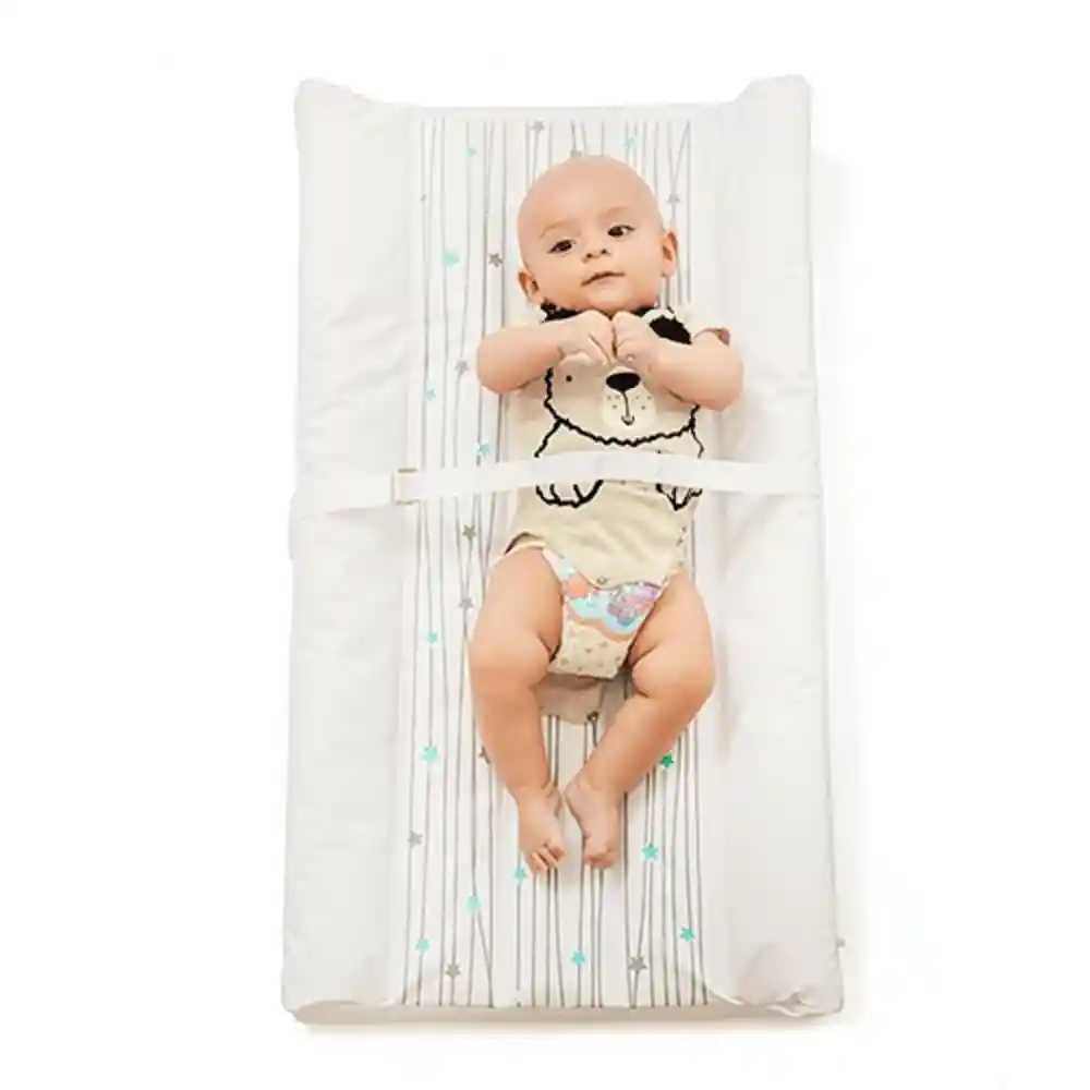 Colchón cambiador para mueble con correas de seguridad, ajustables para tu bebé y el cambiador al mueble. Elaborado con materiales de alta calidad cuenta con una espuma firme y forro anti-fluidos removible, es elaborado con materiales hipoalergénicos, previene infecciones, olores, es lavable, suave, plegable, flexible y portátil. Es portátil para que a donde quiera que vayas, tu bebe pueda gozar de un cómodo sueño. También puede ser utilizado para que la mama descanse y dejar que él bebe juegue o siente sobre el mientras comparten los mejores momentos. Características -Con correas que se ajustan al mueble cambiador del bebé dando mayor seguridad al momento de su uso. -Viene con correa ajustable para el bebé disminuyendo el riesgo de caídas y golpes. -Elaborado con espuma de densidad media ofreciendo la comodidad ideal para tú bebé al momento del cambio. -Cubierta antifluído y removible para fácil lavado. -Con lindo diseño en colores neutros que combinan fácilmente con la habitación del bebé. -Sus medidas se acomodan a la mayoría de muebles cambiadores del mercado.