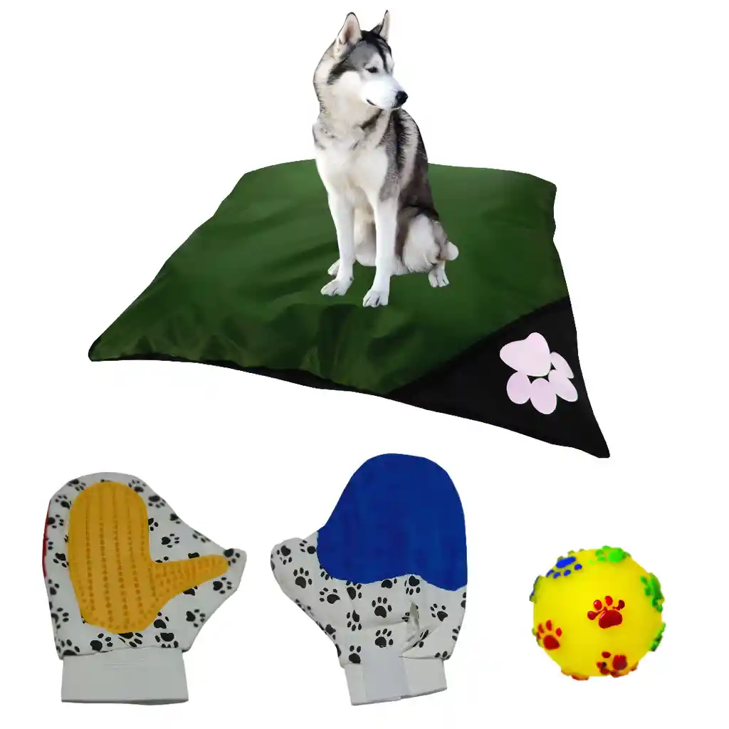 Bienvenido somos Hally Pets, tu mejor aliado para el cuidado de tu hijo Perruno y/o Gatuno. CAMA COLCHON LAVABLE PARA MASCOTA Lleva una cama colchón cómoda para tu mascota. Cama para perros en relleno siliconado con cubierta lavable extraíble. Características del producto: • La cama colchón incluye funda con relleno siliconado y adicional su funda en lona extraíble para su lavado. • Medidas para dormir: Largo 80 cm, Ancho 62 cm, Alto 10 cm. • Huella estampada en una esquina del colchón. • Material: Lona Resistente a Rasguños • Suave, consistencia de apoyo según el peso y la presión para aliviar articulaciones, artritis o displasia de cadera. • Funda extraíble y lavable a máquina: la funda de lona y duradera con cremallera es fácil de limpiar y lavar en un ciclo suave, apto para secadora Elige tu color favorito GUANTE CEPILLO PARA PERROS Y/O GATOS El cepillado es la base fundamental para el cuidado del pelaje canino, si lo haces frecuentemente eliminarás hasta el 50% de la suciedad y el pelo muerto de tu perro, dos factores que con frecuencia son los generadores de nudos y los molestos pelos por toda la casa. Lo mejor para las mascotas es usar un "Guante Plástico" o cepillos con cerdas plásticas, los cuales arrastran el pelo muerto sin maltratar la piel, reduciendo considerablemente la cantidad de pelo que tu mascota deja en el sofá, piso, cama y en tu ropa. Guante para que puedas cepillar hasta los lugares más pequeños, como la cara, debajo del cuello y detrás de las patas y torso, es suave y sentirá como si solo estuviera siendo consentido por su dueño. Juguete: 1 Juguete Plástico MEDIANO surtidos con pito. Estos juguetes plásticos con forma son ideales morder, gracias a su tamaño y flexibilidad proporciona entretenimiento y diversión para el amo y su mascota al mismo tiempo que fortalece dientes y mandíbulas