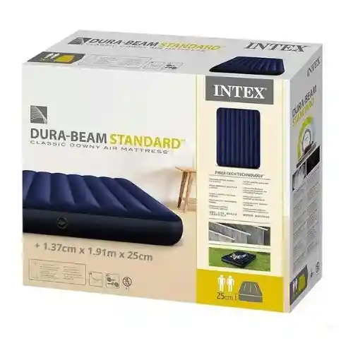 🛏️ Colchón Inflable Doble Intex Dura-Beam – Modelo Classic Downy Standard (1.37 m x 1.91 m x 25 cm) Comodidad, resistencia y practicidad en un solo colchón. El Intex Dura-Beam Classic Downy Standard es perfecto para visitas en casa, acampar o tener una cama extra lista en minutos. ✔ Tecnología Dura-Beam: estructura interna con fibras de alta resistencia que no se deforman. ✔ Tamaño doble: 1.37 m x 1.91 m x 25 cm, ideal para 2 personas. ✔ Superficie flocada tipo terciopelo: suave, cómoda y antideslizante. ✔ Material resistente: soporta uso frecuente y brinda mayor estabilidad. ✔ Válvula 2-en-1: inflado y desinflado rápido con bomba manual o eléctrica (no incluida). ✔ Compacto y fácil de guardar: perfecto para viajes o almacenamiento.