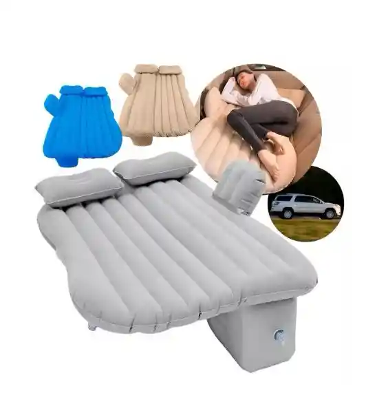 Colchón Inflable Para Autos Con Almohadas E Inflador Este colchón inflable para vehículo es la opción ideal para un descanso repentino o un viaje al aire libre. Se puede colocar en los asientos de pasajeros y convertir el espacio en una cama cómoda con almohadas para una o dos personas. Las boquillas de aire con doble sellado ayudan a que el aire no se escape fácilmente y dure por mucho tiempo. El material flocado es suave y agradable al tacto. Incluye un soporte que se rellena y luego se posiciona en el espacio inferior entre asientos para servir de apoyo al colchón y darle mayor estabilidad. Puedes inflar o desinflar rápidamente en unos minutos, y puedes ajustar la cantidad de aire. Para inflar el colchón, debes poner la boquilla en el colchón y luego conectar el cable del inflador al enchufe del vehículo para que empiece a bombear. Al desinflarse, se puede plegar y guardar dentro de su bolsa de transporte sin ocupar demasiado espacio en el maletero del automóvil. Debido a que la superficie es impermeable, es fácil de limpiar y mantener. Incluye un kit de parches y pegamento para reparar aperturas o rasguños. Se puede usar como una cama de descanso ya sea en el coche, al aire libre o en casa. Ideal para vehículos con buen espacio en los asientos traseros como camionetas, SUV, o minivans. - El tiempo que dura el aire inflado es de 10 hrs. en promedio, luego de ello empieza a perder aire y debe rellenarse para un uso continuo. Especificaciones: Material: PVC flocado, felpa Color: Azul, Gris, Beige Duración de inflado: 10 hrs. Tamaño (plegada): 37x28x12 cm aprox. Peso (plegada): 2.6kg Tamaño (armada): 135x50x82 cm aprox. Peso máximo soportado: 150 kg aprox. El paquete incluye: 1 x Colchón con soporte inflables 2 x Almohadas 1 x Inflador con boquillas 1 x Kit de reparación 1 x Bolsa de transporte